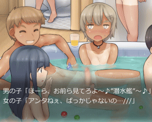 別荘で成人の男女が仲良く混浴している所を覗いちゃうエロゲームです!