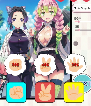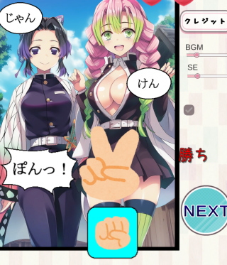 鬼滅の刃の胡蝶しのぶと甘露寺みつりの二人の美女と野球拳しちゃうエロゲームです!
